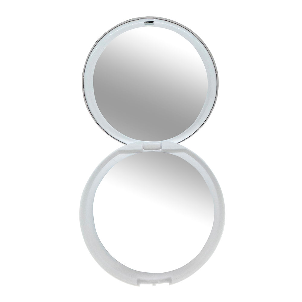 Зеркало складное двухстороннее с увеличением на одной стороне. Изготовлено из качественного материала приятного на ощупь. Одна сторона двойного зеркальца имеет двукратное увеличение, вторая сторона - обычное зеркало. Зеркало идеально подойдет для маленькой сумочки или клатча. Продукт имеет стильный лаконичный дизайн и представляет собой удобный самостоятельный аксессуар, который ежедневно будет помогать вам убеждаться в безупречности вашего макияжа и отлично выглядеть.