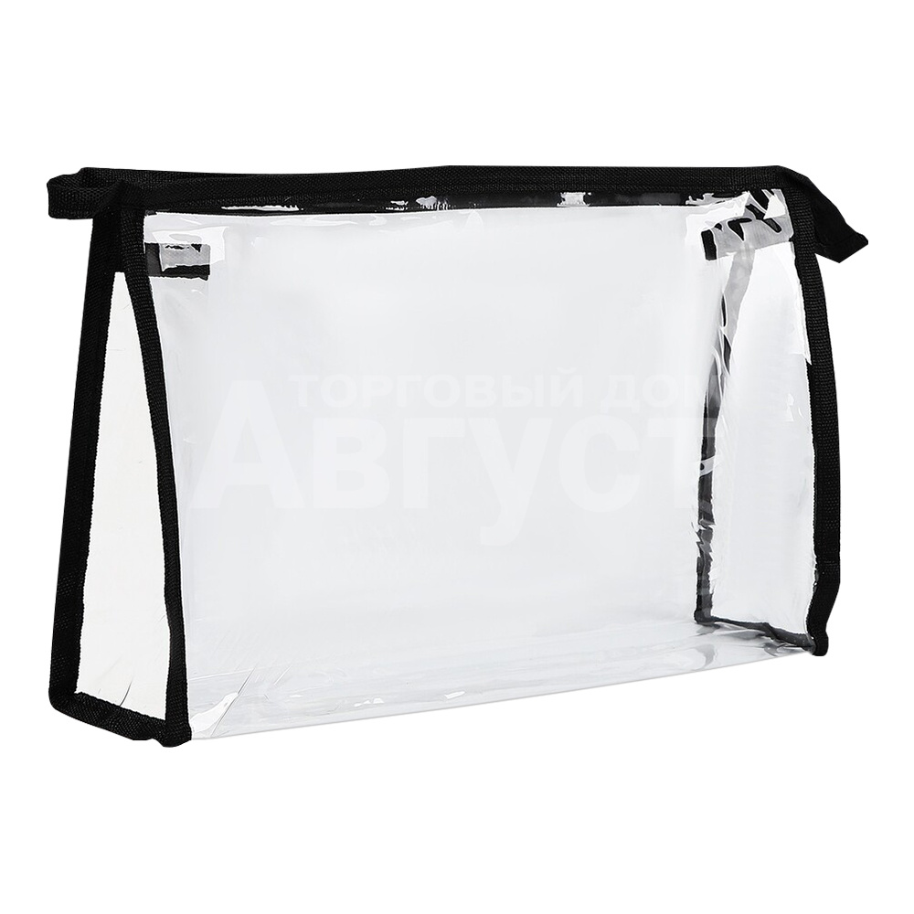 Косметичка изготовлена из прозрачного ПВХ. Имеет прочную молнию. Внутри нее имеется одно место для хранения любых предметов. Косметичка водонепроницаемая и легкая в любом положении поддержки. Имеет черный цвет, который дополнит ваш образ.