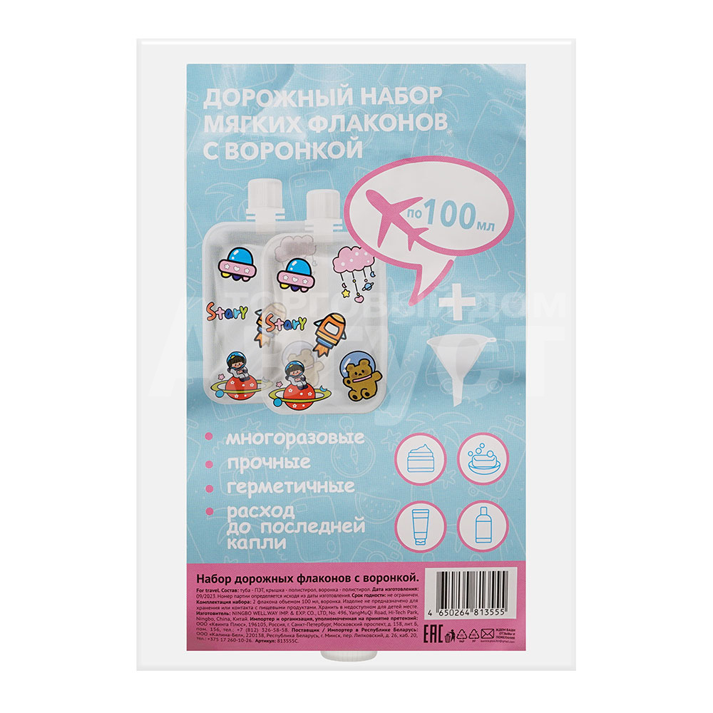 Удобные и компактные многоразовые тюбики для косметики в поездку. Занимают мало места в чемодане, подходят в ручную кладь самолета. Емкости украшены изображениями, которые помогут вам запомнить, какие средства находятся внутри. Мягкие полиэтиленовые флаконы безопасны для вашей косметики, обеспечивая надежную защиту от утечек и повреждений.