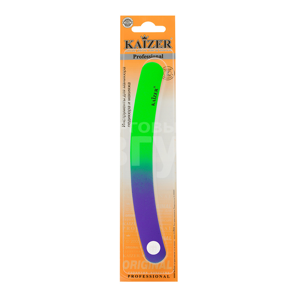 Пилочка маникюрная Kaizer 703148 2-сторонняя, шлифовочная на деревянной основе, 175 мм, фиолетово-зеленая