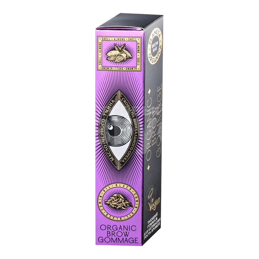 Масло чёрного тмина богато жирными кислотами, витаминами группы B, D, Е и минералами. Его использовала сама царица Нефертити для поддержания своей невиданной красоты. Масло черного тмина стимулирует рост бровей, делает их густыми и красивыми. Скорлупа миндального ореха - природный эксфолиант, бережно очищает и обновляет кожу, насыщает ее кислородом и активирует рост бровей.