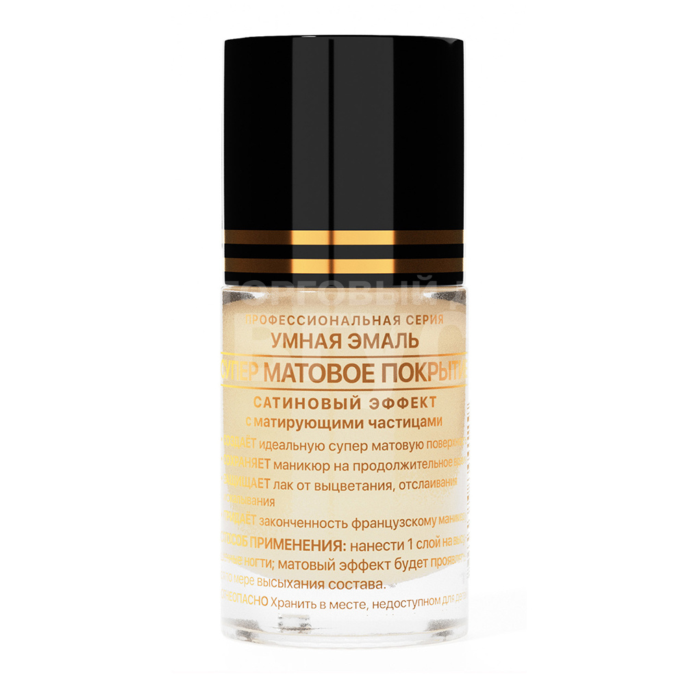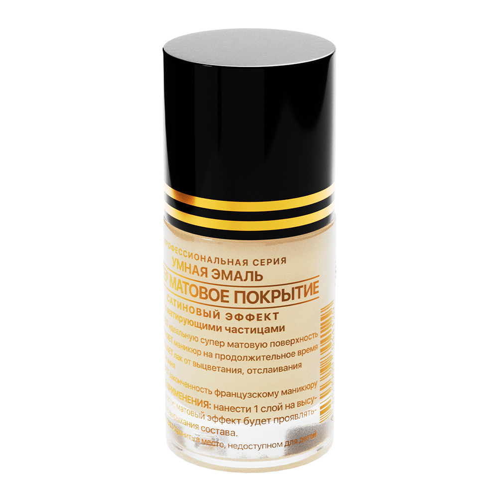 Защитное верхнее покрытие, создает прекрасную матовую поверхность ногтя. Научно сбалансированная комбинация витаминов А, Е, а также экстракта морских водорослей усиливает регенерацию клеток, снижает воспалительные реакции, стимулирует рост и крепость ногтевого ложе, нормализует влажность ногтевой пластины. Благодаря содержанию в составе бриллиантовой пудры покрытие заполняет неровности ногтевой пластины, делает ее идеально гладкой, придавая ногтям «сатиновый эффект». Создает идеальное покрытие для поддержания маникюра между посещениями салона.