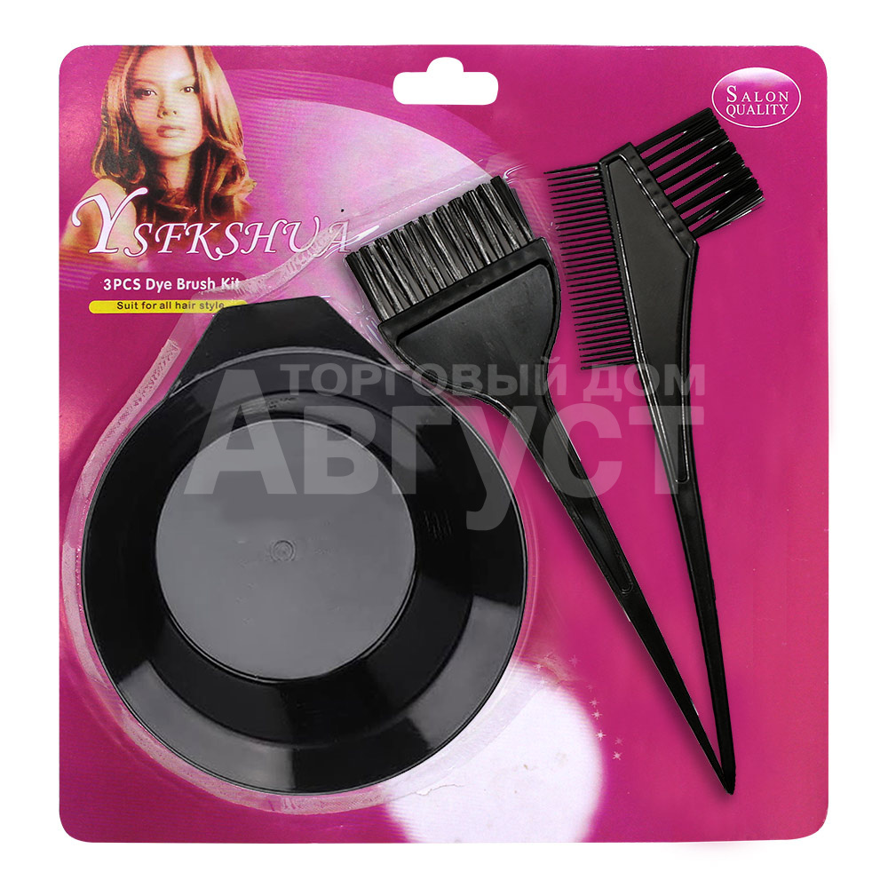 Набор для окрашивания волос cостоит из базовых атрибутов. Изделия изготовлены из пластика, имеют черный цвет. Миска устойчива, с боковым держателем и внутренней шкалой для дозирования окрашивающих препаратов. Кисть оснащена синтетической щетиной, ручка удлиненная, с умеренно острым кончиком для быстрого разделения прядей в процессе нанесения краски. Таким набором можно с одинаковым успехом пользоваться как в салоне-парикмахерской, так и в домашних условиях. Материал: пластик